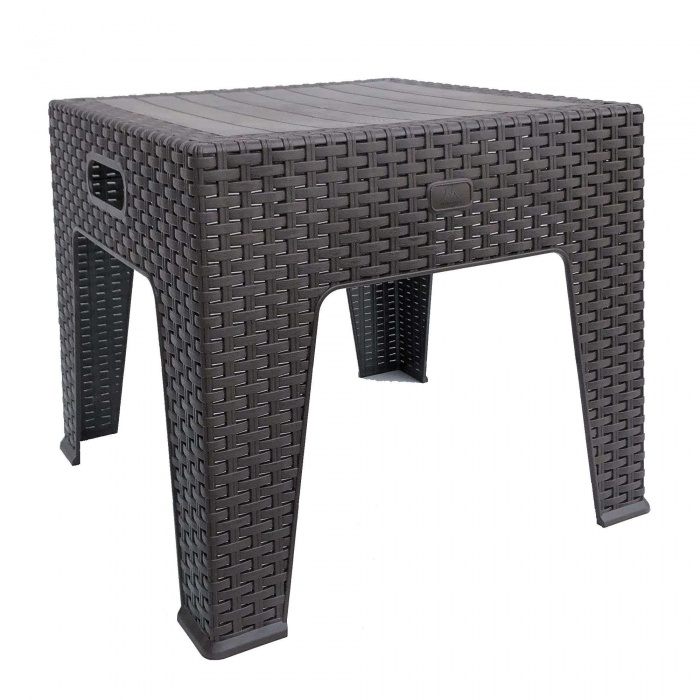 RomanoSet Plastik Hasır Desenli Kahverengi Rattan Bahçe Balkon Plaj ve Şezlong Sehpası